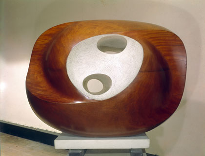 By the end of 1934 Hepworth was making totally abstract sculpture - not simplifications (or abstractions) of human or organic forms, as was the case with her contemporaries Brancusi and Arp. These works by Hepworth can be regarded as the first completely abstract sculptures made anywhere in the world, the equivalent of the carved White Reliefs that Ben Nicholson was making simultaneously. In the next five years, up to 1939, Hepworth developed a repertory of very simple abstract shapes with titles such as 'Single Form', 'Two Forms', 'Pierced Hemisphere', 'Helicoids in Sphere', 'Conoid, Sphere and Hollow'.